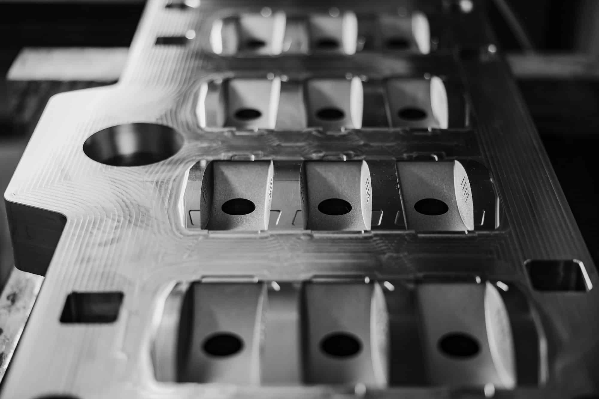 Key factors in HPDC mold design include the selection of materials resistant to thermal fatigue, a precisely designed cooling and venting system, geometry that prevents soldering (adhesion of aluminum to steel), design solutions that reduce the risk of mold cracking, appropriate surface finishing, and overall mold optimization for both cycle time and tool durability.